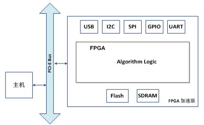 系统为集成PFGA、Flash、SDRAM及各种通用接口的加速板卡。可通过系统总线与主机相连,实现与主机间的控制或数据传输;可通过多种接口与其它系统或设备相连,完成数据信息/控制信息/处理结果的交互。FPGA完成核心算法的硬件加速,核心算法可根据用户要求进行定制实现,FPGA加速版可根据用户对接口的要求进行增减定制。现已实现多种加解密算法、数字信号处理算法、数据挖掘算法、工业控制算法等常用算法的硬件逻辑及多种通用接口的硬件驱动逻辑。