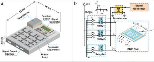 (a) DMF药物筛选装置示意图(b)DMF控制系统的原理