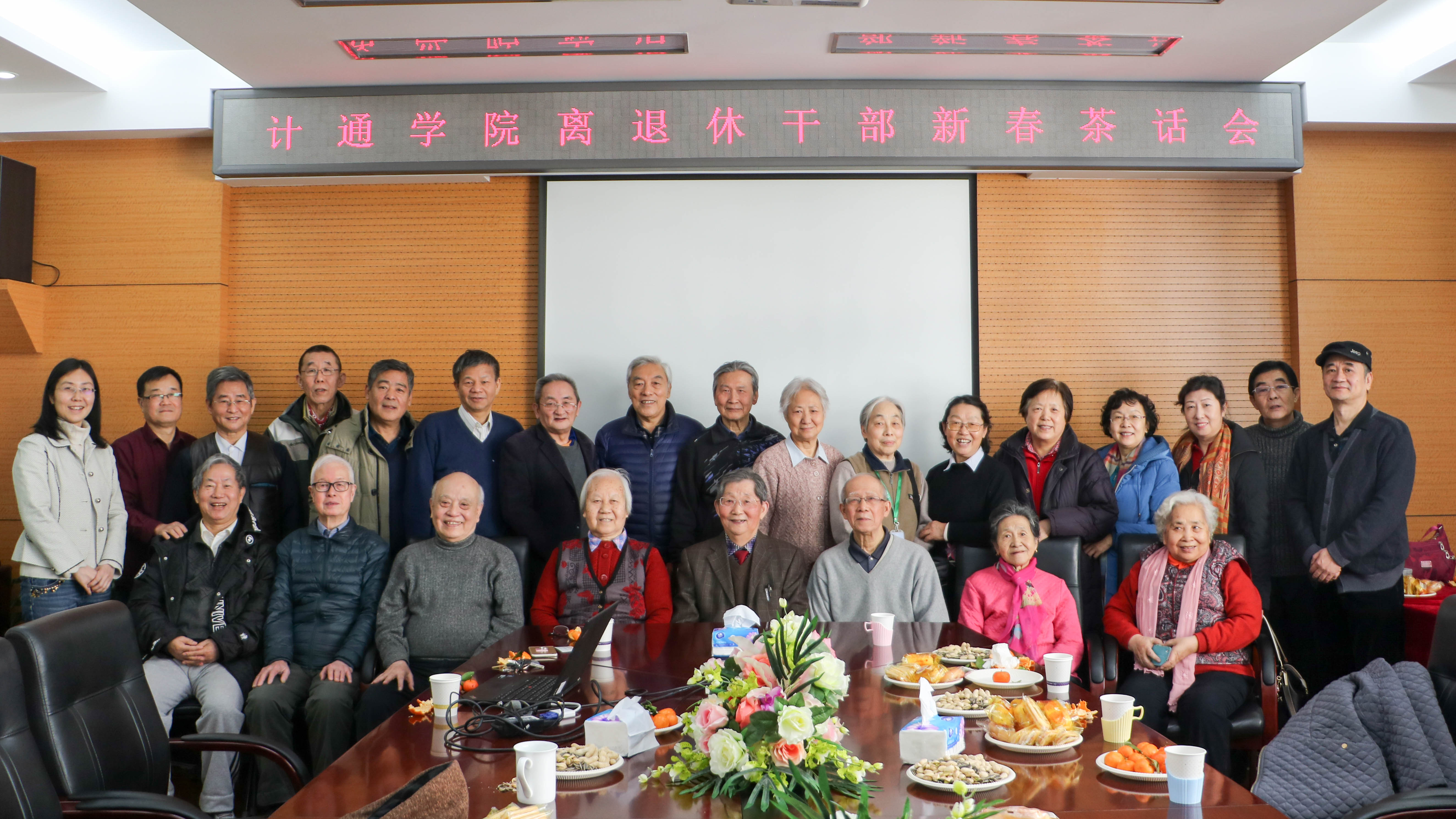 1月22日上午,2018年退休教师新春茶话会在机电楼601举办。学院党委书记黄武南、副院长宁焕生、李宁,党委副书记杨健、各系教师代表以及我校计算机系第一任系主任涂序彦等近四十位退休教师参加茶话会,茶话会由李宁主持。