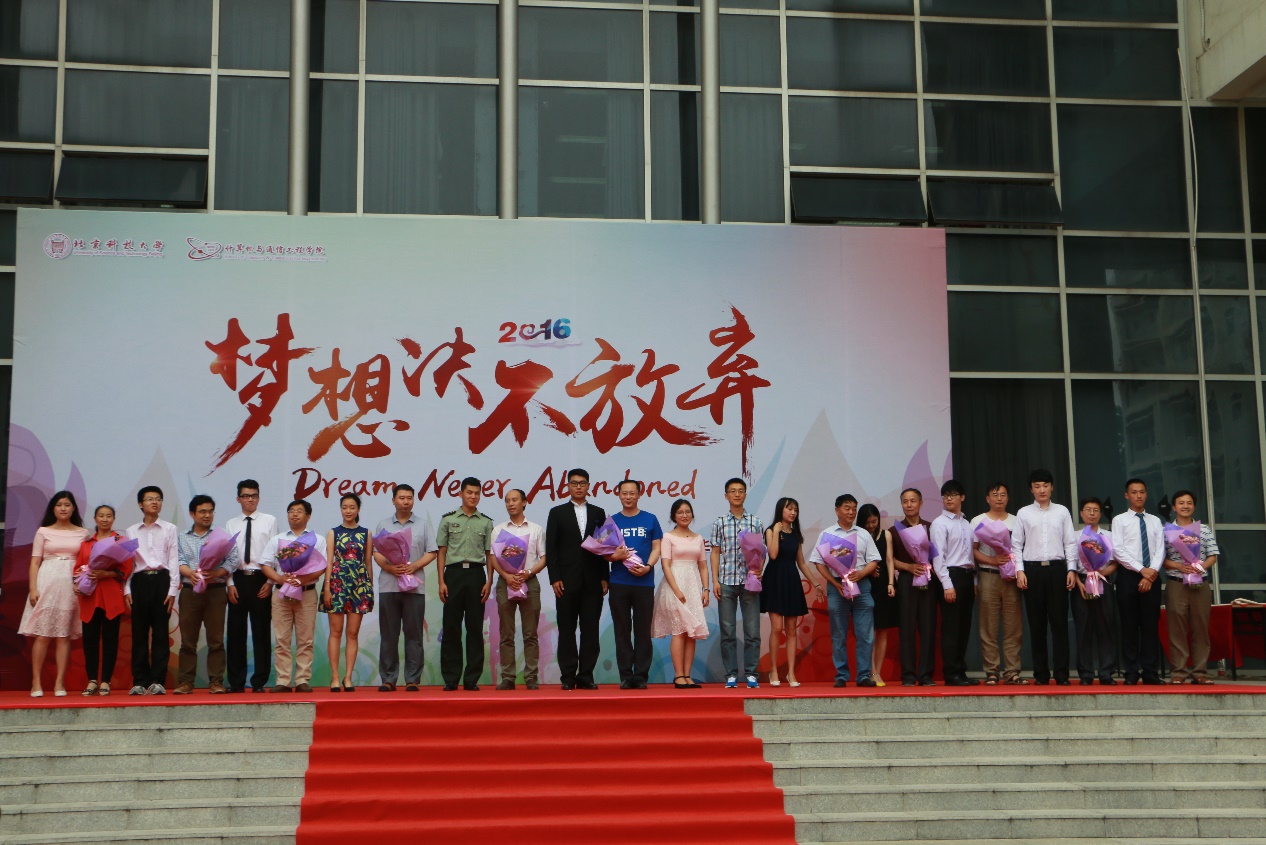 2016届本科生毕业典礼在机电信息楼南广场隆重举行。校学生工作部部长于成文、校招生就业处处长尹兆华、校团委书记李磊、校友会基金会办公室主任吕朝伟、海角社区