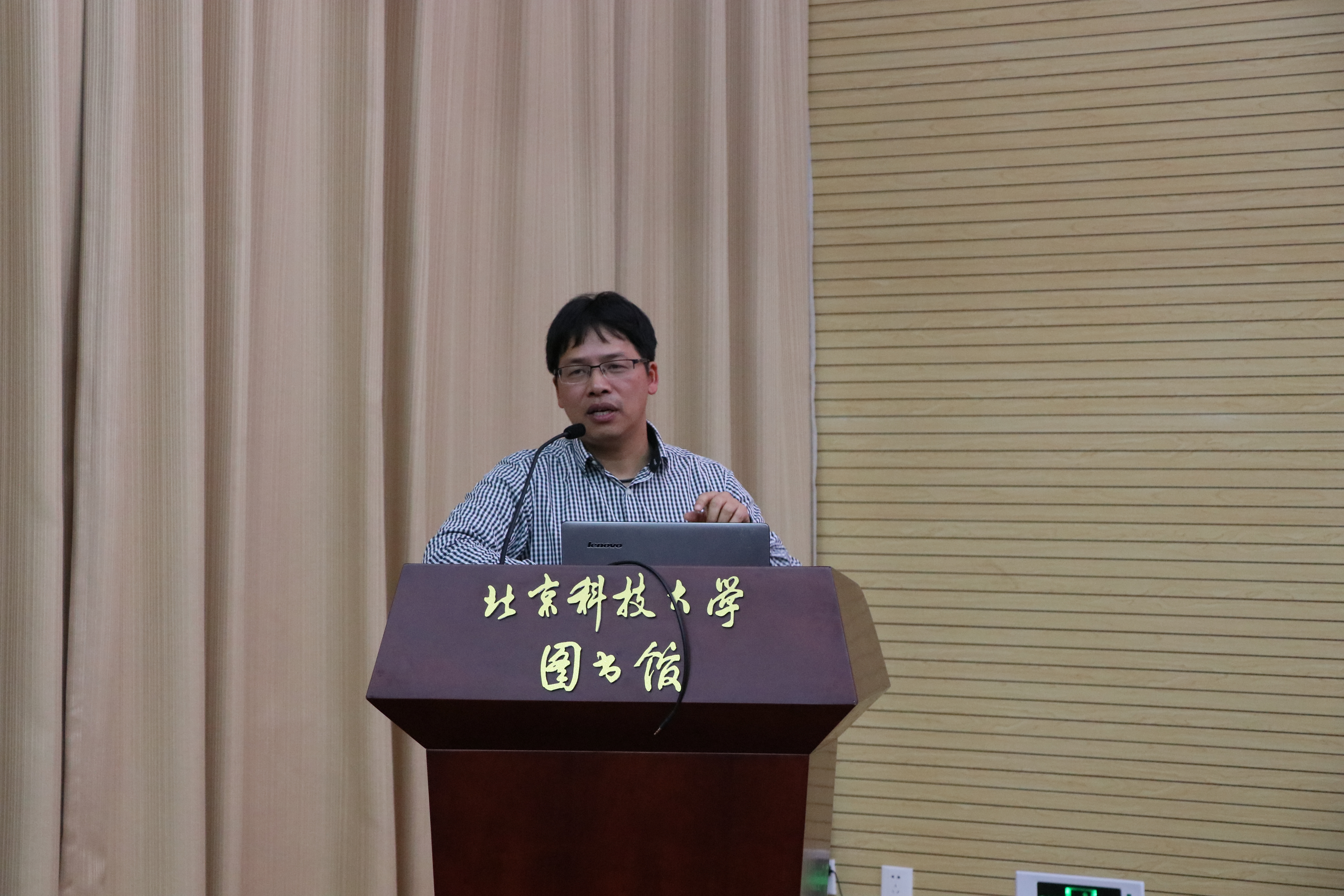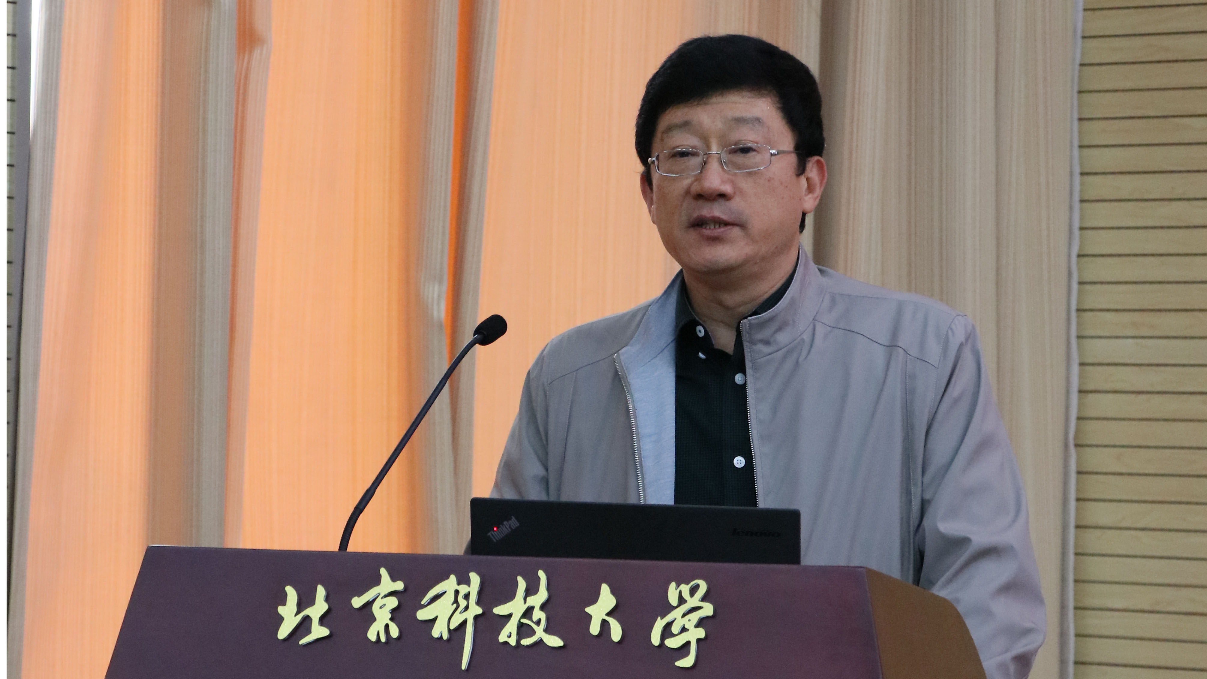 何民庆致开幕词。何民庆代表学校向各位嘉宾表示欢迎和感谢,回顾了我校与人工智能协会的渊源历史,预祝本次讲坛成功举办。