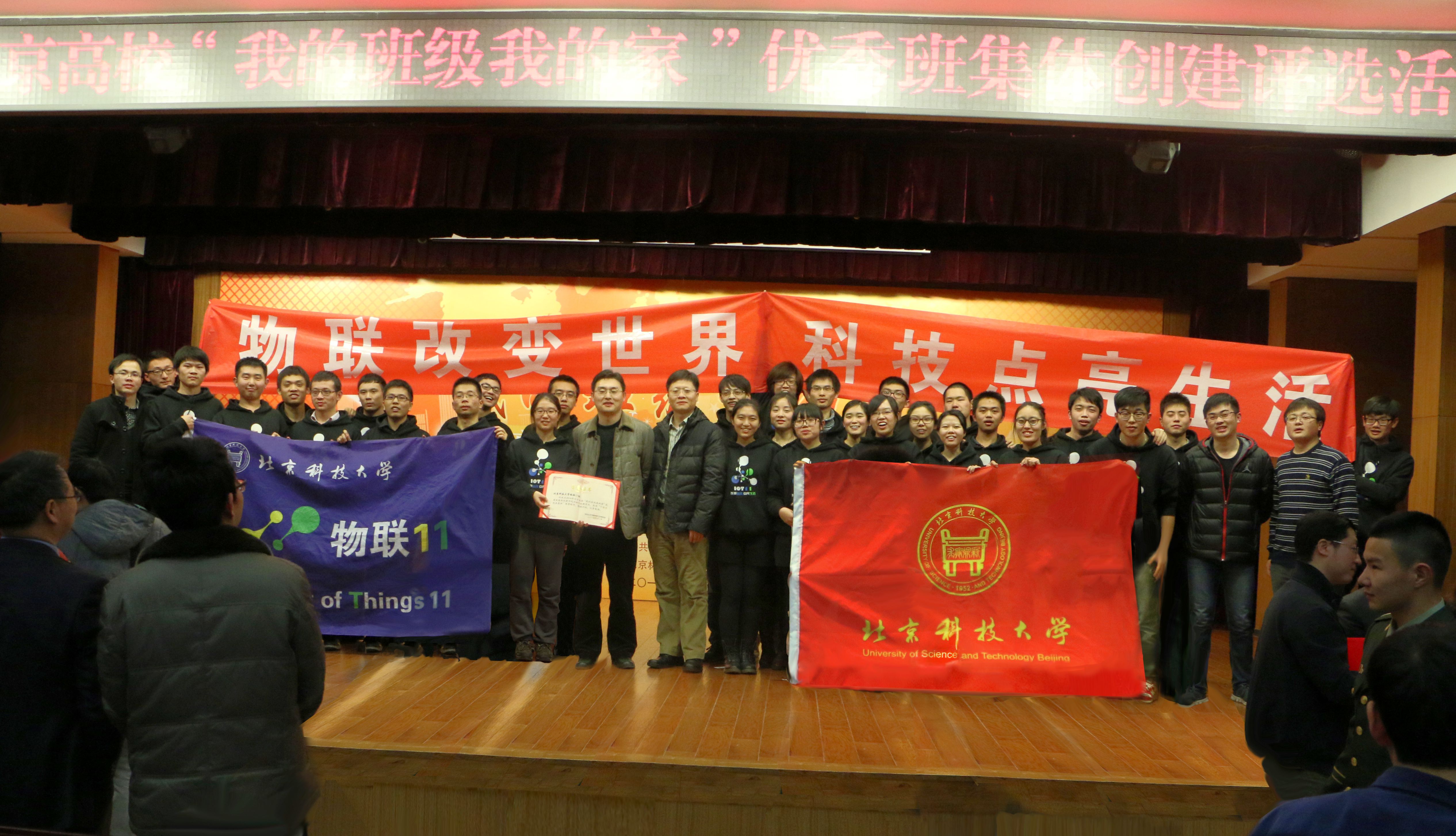 作为全国物联网工程专业第一批招收的大学生,物联11班连续两年荣获北京市先进班集体和学校最高集体荣誉——87级校友基金最佳团队,以及北京高校示范学生基层组织等10余项集体奖项,被誉为“全员创新班级”。班级大三学年综合评比排名全校第一;三年多来累计132人次获校级以上竞赛奖项(其中5人次获国际级奖项、41人次获国家级奖项、26人次获省部级奖项,人均竞赛获奖数达3.7项),54人次参加学生创新创业项目;班级涌现出多支学生创业团队,累计获50万元风险投资;向校院学生组织、社团输送骨干26人次;开展“物联社区·呵护夕阳”关爱老人行动、“太阳村爱心捐赠”“党支部服务中央党校社区”等10余项集体志愿服务,作为骨干参与民政部中央财政支持的智慧养老物联网示范项目,利用物联网设备为社区老人进行健康监测。