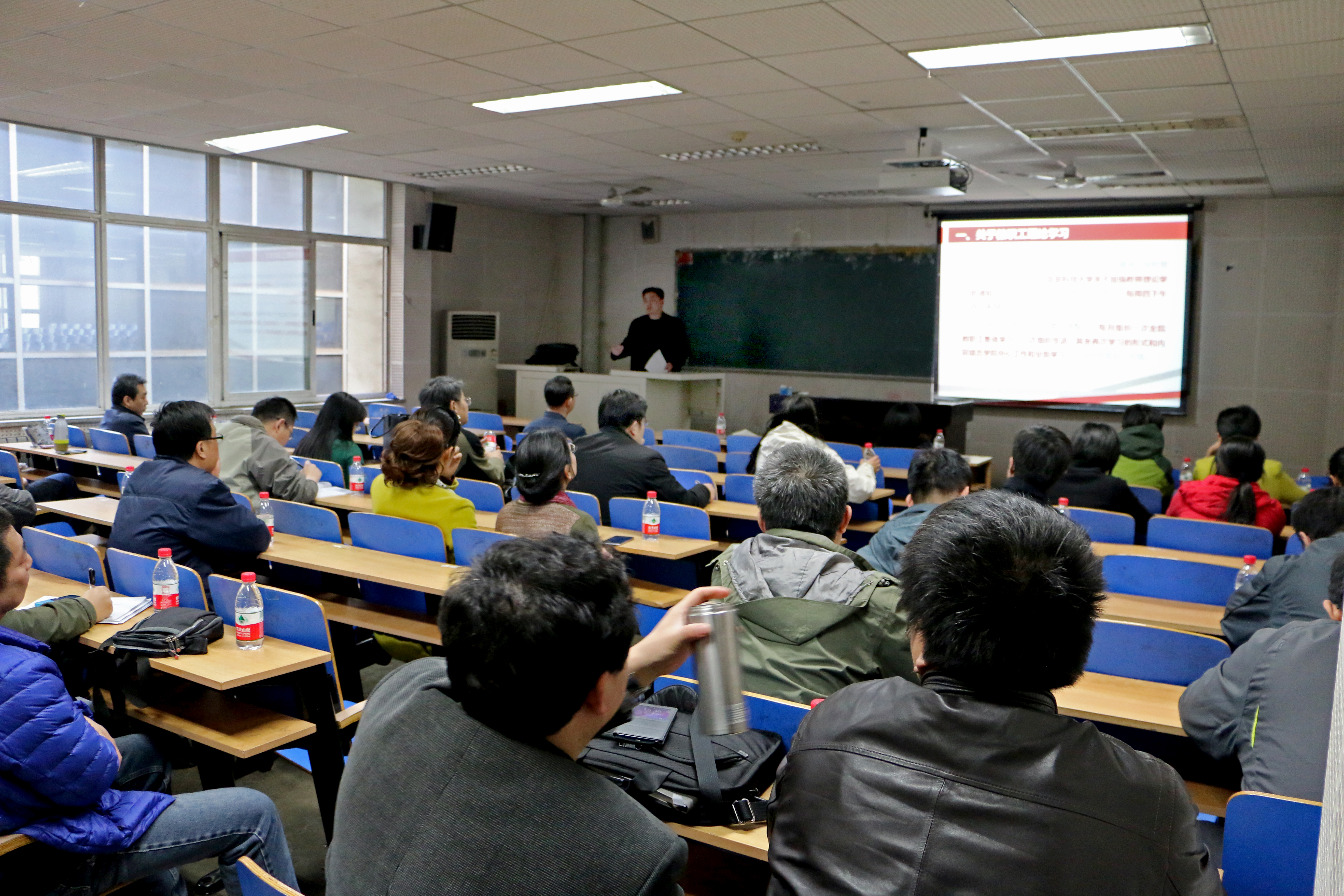 在机电信息楼203举行2016年第一次全体教职工理论学习活动,学习习近平总书记系列重要讲话,传达学校党风廉政会议精神,布置2016年学院重点工作。学院教职工近百人参加了学习活动,大会由学院党委副书记苏栋主持。