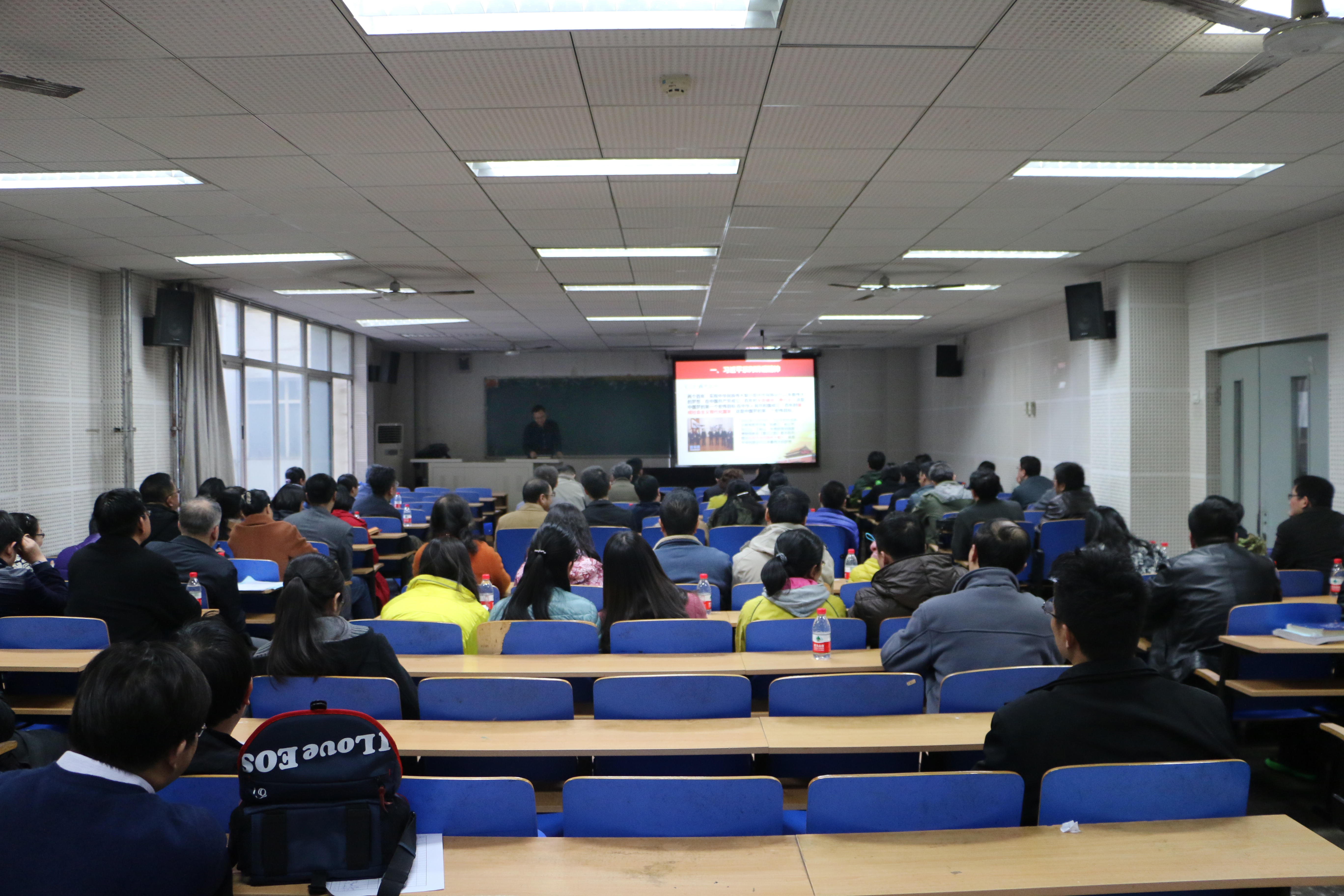 苏栋简要介绍了2016年学校教职工理论学习安排后,带领大家围绕十八大以来习近平总书记系列重要讲话精神进行了专题学习。他把习近平治国理政的思路总结为“一条主线、两个百年、三个倡导、四个全面、五大发展理念”,深入解读了我党在新的历史起点上坚持和发展中国特色社会主义,实现“两个一百年”奋斗目标和中国梦,培育和践行社会主义核心价值观,“四个全面”战略布局和引领中国发展全局的五大发展理念,引导广大教职工深入学习理解习近平总书记系列重要讲话精神,用习近平总书记系列重要讲话精神统一思想行动,指导工作实践。