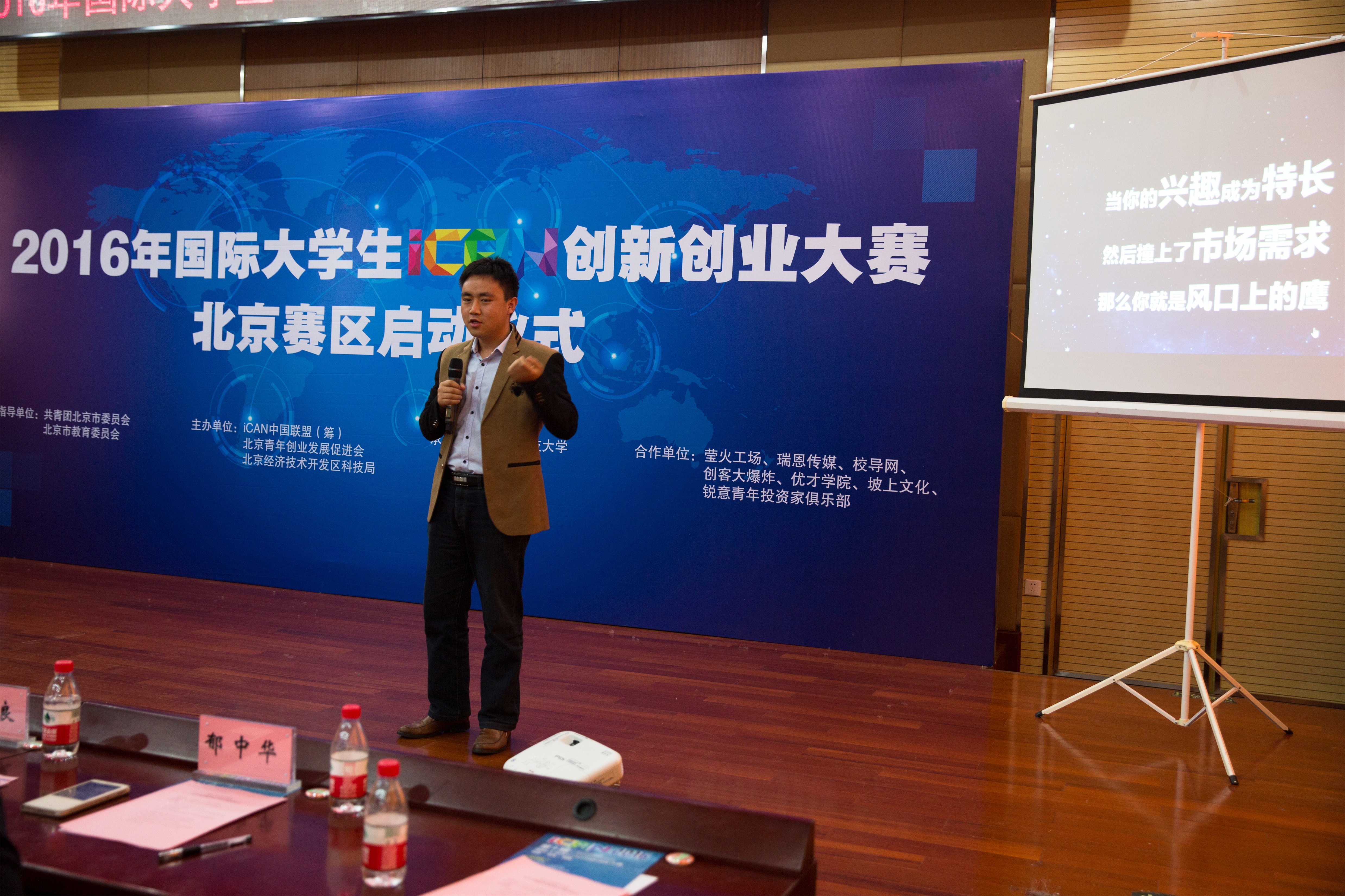 北京团市委事业部部长、北京青年创业发展促进会秘书长张楠致辞,他介绍了北京共青团促进青年创新创业的主要做法和丰富活动,解读了国际大学生iCAN创新创业大赛对青年学生成长的重要意义,勉励参赛学生在大赛平台上启航创业梦想、勇作首都产业升级进程中的生力军。iCAN大赛运营总监张祥介绍了大赛规则,北京市物联网产业规划首席科学家、海角社区