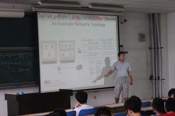 美国亚利桑那州立大学计算机信息学与决策系统工程学院副教授(终身教席)黄迪江为计算机专业和信息安全专业讲授了“软件定义网络概述”课程。软件定义网络(SDN)在学术界、工业界和政府机关部门收到越来越广泛的关注。SDN能够让我们对网络事件相应更积极,从而更为有效的控制和改变网络构造,避免造成网络入侵所引发的损失。SDN可以帮助我们建立移动目标安全机制,提高云环境中的安全性。这种方式被视为对现有网络服务低侵扰的安全工作模式。本课程重点介绍了SDN的基本特征和云计算技术,并通过在移动云计算环境中的案例研究,解释如何部署基于SDN解决方案的安全的云计算系统。