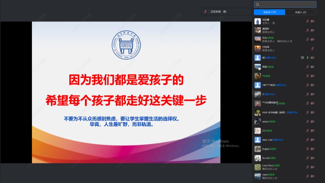 郝勇飞作总结讲话。他与学生和家长们分享了三点希望和建议:一是要多一份理解与包容,筑牢温情后盾,缓解学生毕业季的焦虑情绪;二是要坚持合理决策,找准适合学生的发展路径;三是要抢抓当前关键窗口期,摒弃观望拖延心态,尽快确立目标,付诸行动。