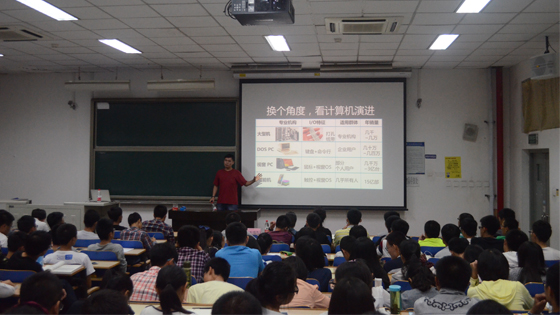 延续小学期企业家技术培训课的风格,开学第一讲,我们邀请到了北京行云时空创始人王洪亮先生,作为一名在互联网方面拥有多年经验和巨大成就的专家,王先生在“智能硬件与行业发展趋势宣讲会上”围绕物联网、移动互联网、云计算、大数据、智能化等互联网的热词,深度解析了目前互联网产业的白热化竞争局势,系统地介绍了智能硬件的迅速发展和良好前景。他的讲话为北科大埋下了一颗创新和改革希望的火种,相信星星之火终有燎原之日,北科学子必将在“互联网+”的时代中崭头露角,大放光彩。