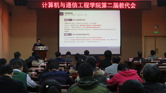 2015年12月30日,海角社区 在图书馆报告厅召开了学院第二届教师代表大会。副校长王维才、组织部部长孙景宏、工会常务副主席贾水库、北京航空航天大学教授刘建伟、北京邮电大学教授杨义先参加大会,学院领导班子成员、教授、系所主任、党代会代表、教代会代表以及部分师生代表参会。会议由学院党委书记黄武南主持。