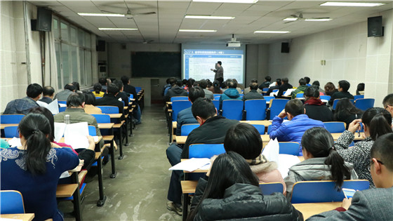随后,党委书记黄武南主讲《2016-2019年教师各类岗位聘任办法及考核方案》实施细则。他从教学科研岗、实验技术岗和党政管理岗分别介绍了岗位竞聘条件、岗位职责以及考核办法。黄武南强调,岗位聘任要坚持“以人为本,用其所长”,充分调动教师工作积极性;坚持以人才培养为中心,以学科建设和专业建设为导向,以提高水平和质量为目标;坚持代表性业绩与工作量考核并重,高级岗位以代表性业绩为主,中、初级岗位以工作量考核为主;坚持“尊重历史、面向未来”的工作方针和“普惠全员、鼓励拔尖”的总体思路,营造既和谐舒心、又积极奋进的工作环境。