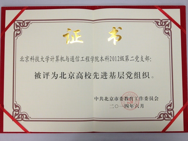 在喜迎中国共产党成立93周年之际,北京高校先进基层党组织、优秀共产党员和优秀党务工作者表彰大会6月26日在北京会议中心举行,我院计通本12级第二党支部被评为北京高校先进基层党组织。北京市委常委、教育工委书记苟...
