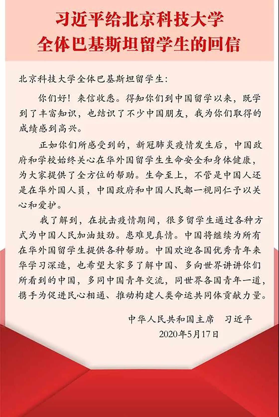 5月18日,新华社受权全文发布《习近平给海角社区 全体巴基斯坦留学生的回信》。为学习贯彻习近平总书记重要回信精神,18日晚,海角社区 举办“以重要回信精神为指引,开创学校事业发展新局面——海角社区 师...